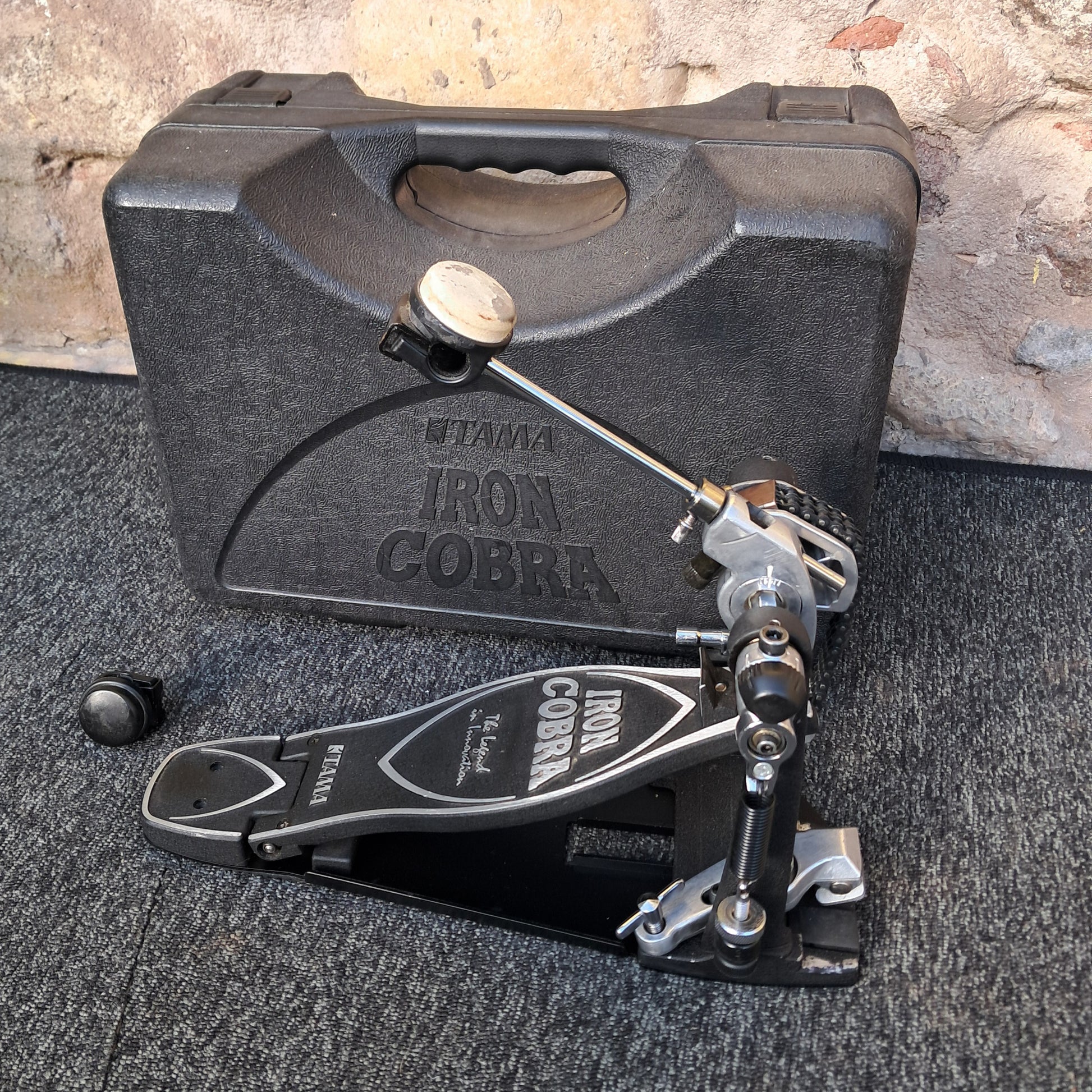 Pedale Tama Iron Cobra HP900, Power Glide. Di livello professionale, tra i più usati in assoluto dai batteristi. Usato ma In buone condizioni. Valigetta rigida per il trasporto inclusa nel prezzo. Non presenta malfunzionamenti o difetti di alcun genere, viene fornito di due battenti intercambiabili di cui uno in feltro (leggermente segnato) e uno in gomma